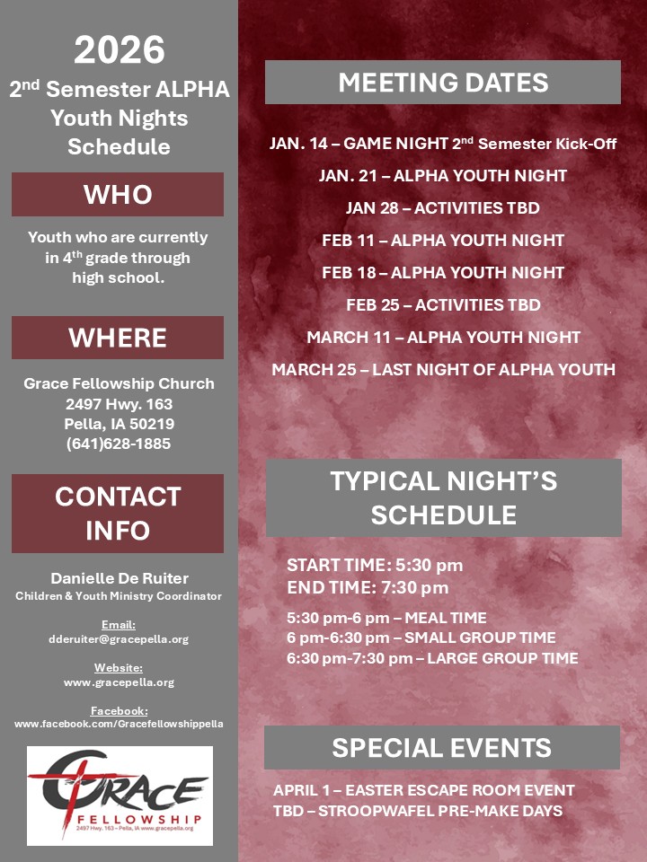 We will follow school closures with Pella Community Schools. If school is cancelled our activities will be cancelled also.